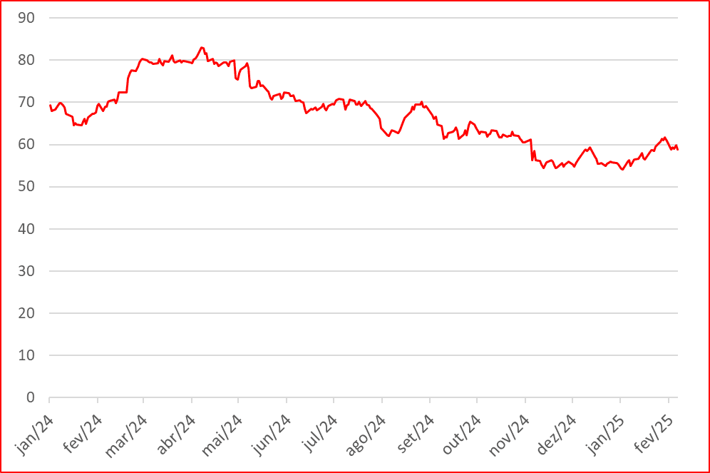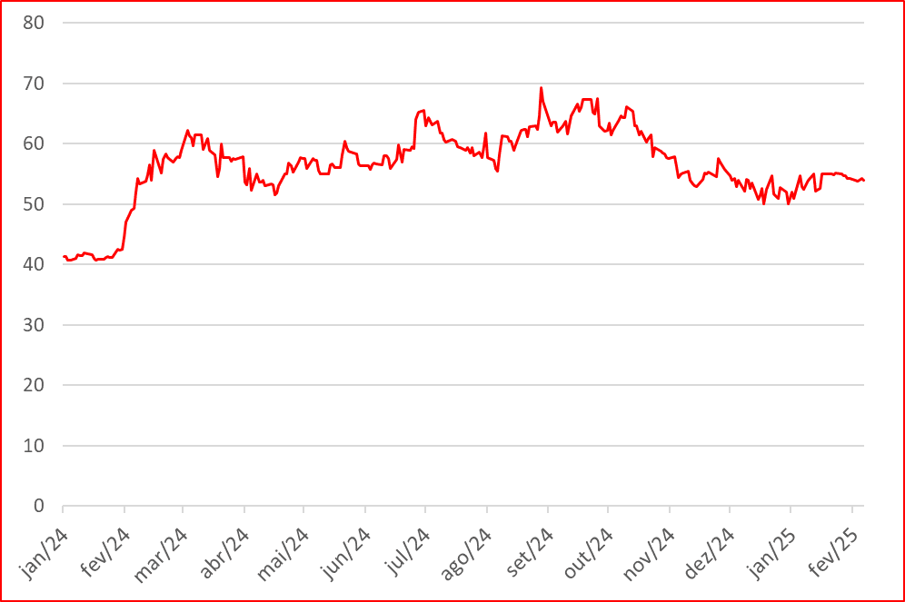 - Máximo: 25 de Novembro de 2024, com 60,20.