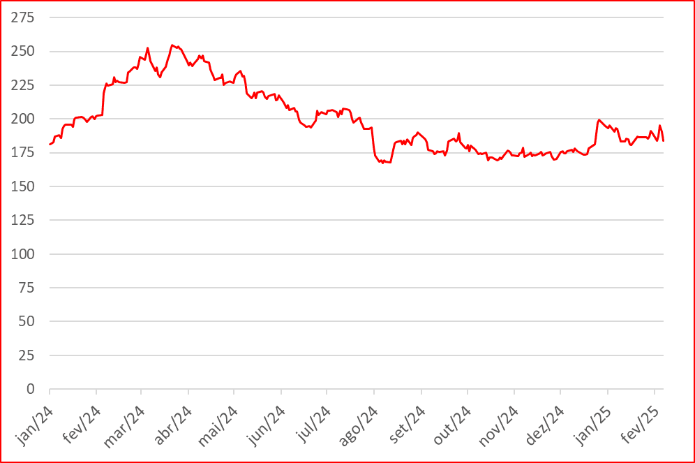 - Mínimo: 22 de Abril de 2024, com 142,05.