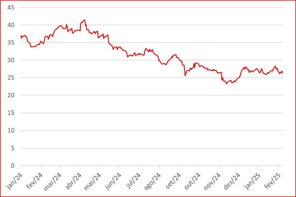 - Mínimo: 19 de Dezembro de 2024, com 23,70.