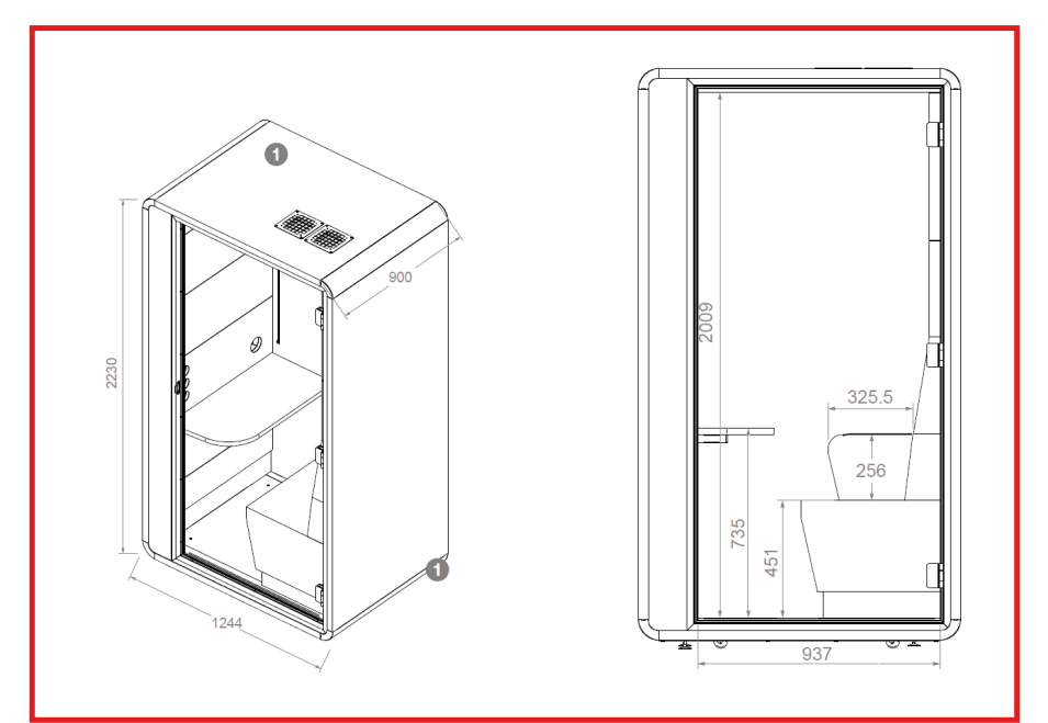 uma iluminação frontal facial favorável para videoconferências”. Apesar de anti-sísmicas, “as cabines acústicas deverão estar equipadas com rodas, permitindo uma fácil mobilidade e reposicionamento conforme necessário”.