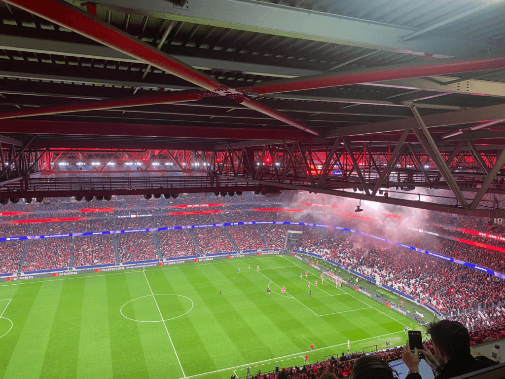 (estranhamente, o estádio não está cheio, não sei se pelo preço dos bilhetes ou pela semana do Carnaval ter esvaziado Lisboa)