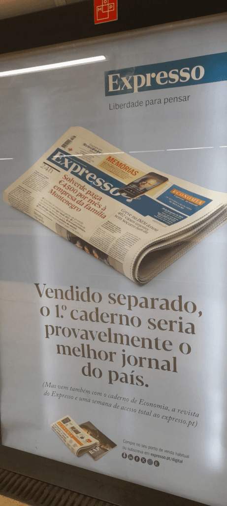 Mas passemos ao que interessa. Ouvi a novas do metro, onde humanos apressados não têm o poder de contemplação dos gatos sobre esta maravilha da publicidade contemporânea do Expresso: