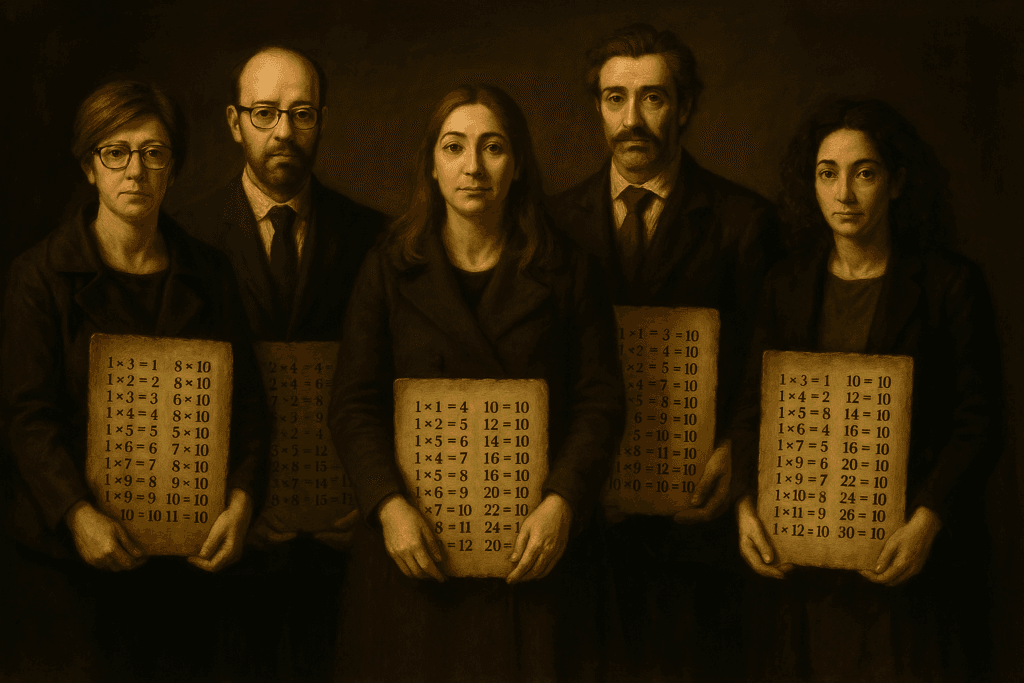 E por isso volto a insistir: fixem-se os nomes dos membros do Conselho Regulador da ERC: Helena Sousa, Pedro Correia Gonçalves, Telmo Gonçalves, Carla Martins e Rita Rola. Que não se escondam por detrás da sigla. Que sejam lembrados, não por actos de coragem regulatória, mas pela sua indigência matemática e pela complacência com o inaceitável. O seu legado está agora cravado numa operação aritmética que nem o acaso conseguiria fabricar. Que se saiba, no futuro, quem foram estes lamentáveis rostos de uma soma impossível.