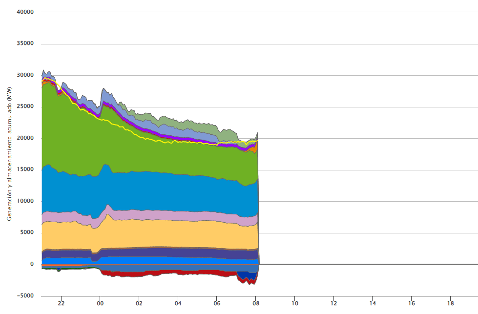 Acresce ainda que a necessidade de electricidade espanhola oriunda de Portugal durante a madrugada não aparenta ter sido imprescindível. Analisando os registos da Red Eléctrica, registou-se durante a recente noite uma redução voluntária da produção hidroeléctrica em Espanha, com parte das turbinas das barragens a serem desligadas, o que fez baixar a potência hidráulica de cerca de 7.000 MW às 21h00 de ontem para cerca de 5.000 MW ao longo da madrugada de hoje. Ao mesmo tempo, Espanha manteve exportações activas para Marrocos, o que mostra que não se encontrava em situação de défice urgente de energia.