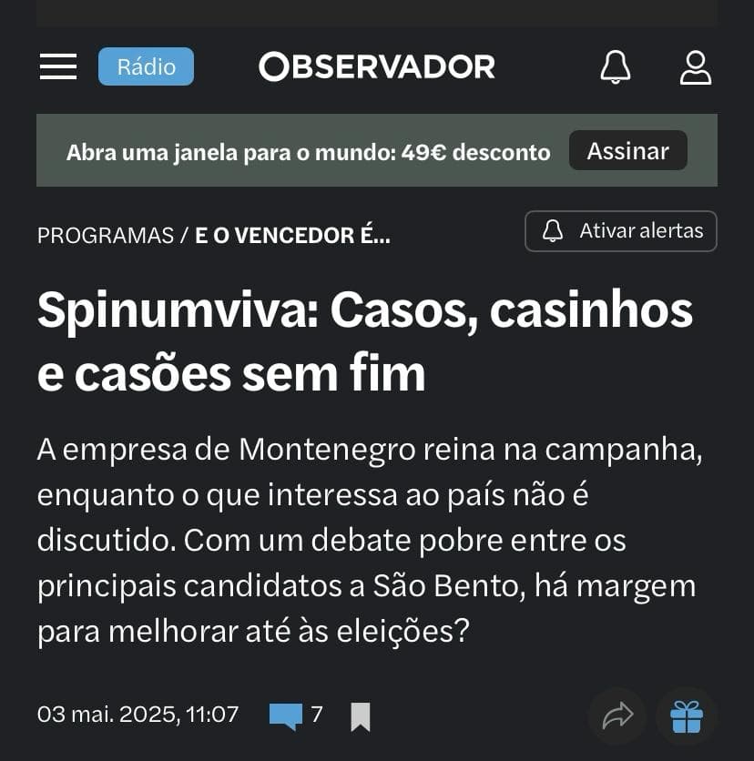 Mas bastaram poucos dias para que se reinstalasse o mecanismo rotineiro da absolvição mediática, essa máquina bem oleada que, em vez de investigar, serve para enxaguar a nódoa. Luís Rosa, jornalista do Observador, que se apresenta como repórter de investigação, apresentou uma suposta investigação jornalística que serviu para uma narrativa muito conveniente para uma ‘limpeza ética’ de Luís Montenegro e preparar um nível de vitimização para ‘desaconselhar’ um enfoque no caso Spinumviva.