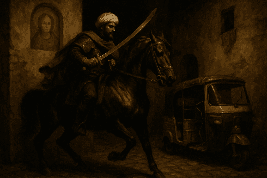 Morava algures na terra de Chelas um agitador infiel de seu nome Geraldes conhecido por furar pneus com uma navalha afiada e pintar nas paredes a figura de um santo padroeiro com cara de anjo, que, segundo os seus seguidores, viria destronar os muçulmanos. Saladino, um homem supersticioso, temia estes rebeldes e pusera a cabeça de Geraldes a prémio. Encarregara o seu mais temível general, Ali, o Africano, de varrer a cidade a pente fino e procurar o infame Geraldes e a sua milícia. Noite e dia, montado em Mohammed, Ali vasculhava cada recanto de Chelas sem nunca lograr dar com Geraldes que devia ser esperto o suficiente para se disfarçar de árabe e andar por aí de barba comprida e jelaba.