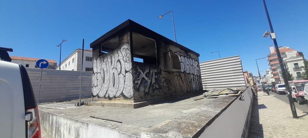 Seguindo em direcção à Graça, pela Rua Damasceno Monteiro, avista-se uma ruína, que é o que sobrou da ‘casa de electricidade’ localizada no antigo parque da EMEL, e que foi incendiada recentemente. Depois do incidente, funcionários da CML estiveram no local para ‘limpar’ a zona que tinha sido ocupada por um casal sem-abrigo. O homem passou a ser conhecido na zona por causar distúrbios e extorquir dinheiro a turistas no estacionamento. Antes da limpeza, o local acumulava diariamente objectos, roupas e lixo diverso.