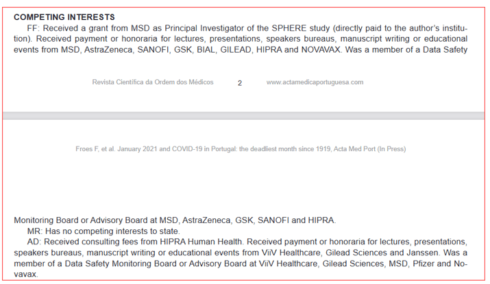 Um dos autores, Filipe Froes, conhecido pelo seu papel mediático durante a pandemia, declara — vá lá! — abertamente ter recebido pagamentos, honorários e colaborações com mais de uma dezena de farmacêuticas, incluindo as principais promotoras de vacinas e de antigripais de eficácia questionável. Não é ilegal, mas torna-se eticamente insustentável que um artigo sobre o impacto da pandemia — coincidente com o início da vacinação em massa — seja publicado sem qualquer crítica ao papel da vacinação, sem referência a efeitos adversos ou à mortalidade em vacinados, ou sem cruzamento com dados de cobertura vacinal. A omissão é gritante e reveladora.