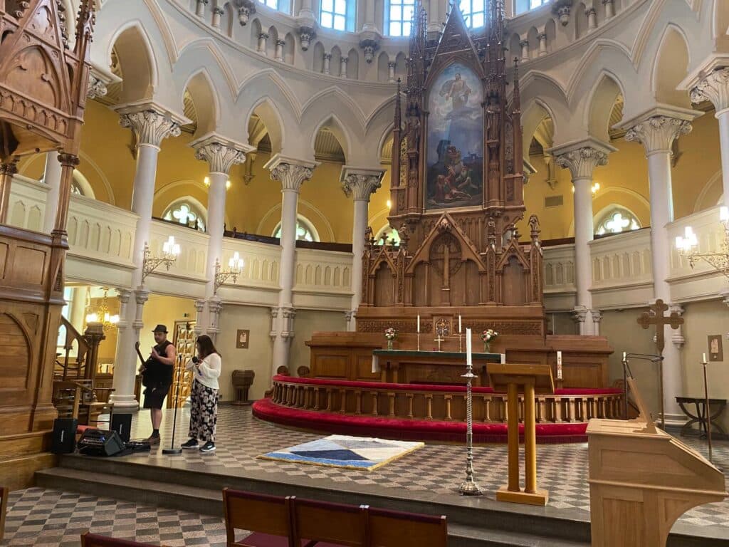 Erguida no final do século XIX, toda em tijolo vermelho e com duas torres esguias que se erguem como dedos de oração protestante, esta é uma peça notável do neogótico nórdico, onde a austeridade não dispensa uma luz diáfana que entra pelas janelas ogivais, como se Deus tivesse alugado o espaço a um arquitecto com predilecção por claridade.