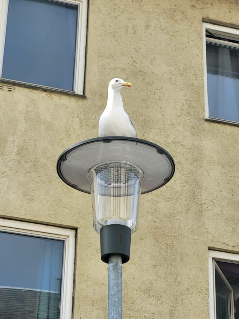Enquanto caminhávamos pela rua da memória da cidade, repleta de lembranças nostálgicas, Sunde continuava a elencar as lojas e empresas forçadas a fechar devido às sanções. As ruas eram maioritariamente frequentadas por cidadãos idosos… O que não surpreendeu, dado que os jovens têm fugido da zona. A população total está visivelmente a diminuir. Neste dia de primavera chocantemente quente, alguns turistas estavam por ali, enquanto as gaivotas, voando baixo, gritavam histericamente, protegendo os seus descendentes. Bandeiras ucranianas podiam ser vistas em cada passo que dávamos.