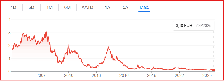 Nos seus relatórios e contas, a Impresa aponta que um dos critérios usados para decidir as políticas de remuneração dos quadros de gestão é o facto de a empresa estar cotada em Bolsa e, portanto, querer alinhar os salários dos gestores aos de outras cotadas de similar dimensão. Isto apesar de as acções da Impresa estarem hoje a cotar em Bolsa na casa dos 10 cêntimos quando em Abril de 2014 ainda chegaram a aproximar-se dos 2 euros. Daí para cá, em pouco mais de 11 anos, a queda em bolsa foi de quase 95%.