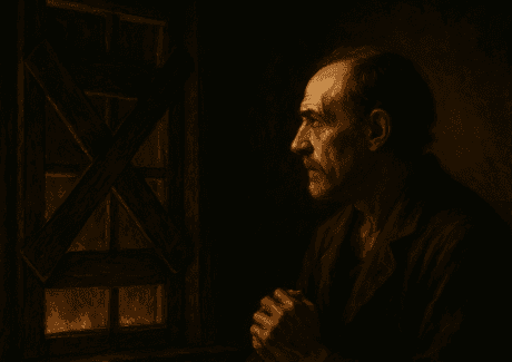 Encurvado, tateando as paredes, avançou para dentro da escuridão sufocante. Tropeçou, praguejou e riscou alguns fósforos até chegar ao quartinho.