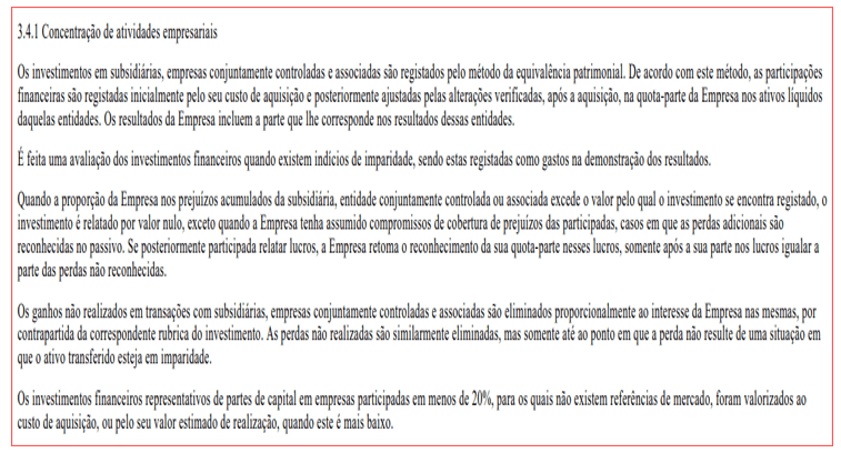 Na própria Informação Empresarial Simplificada (IES), entregue na Base de Dados das Contas Anuais, a Páginas Civilizadas declara que os investimentos em subsidiárias, empresas conjuntamente controladas e associadas são registados pelo método da equivalência patrimonial.