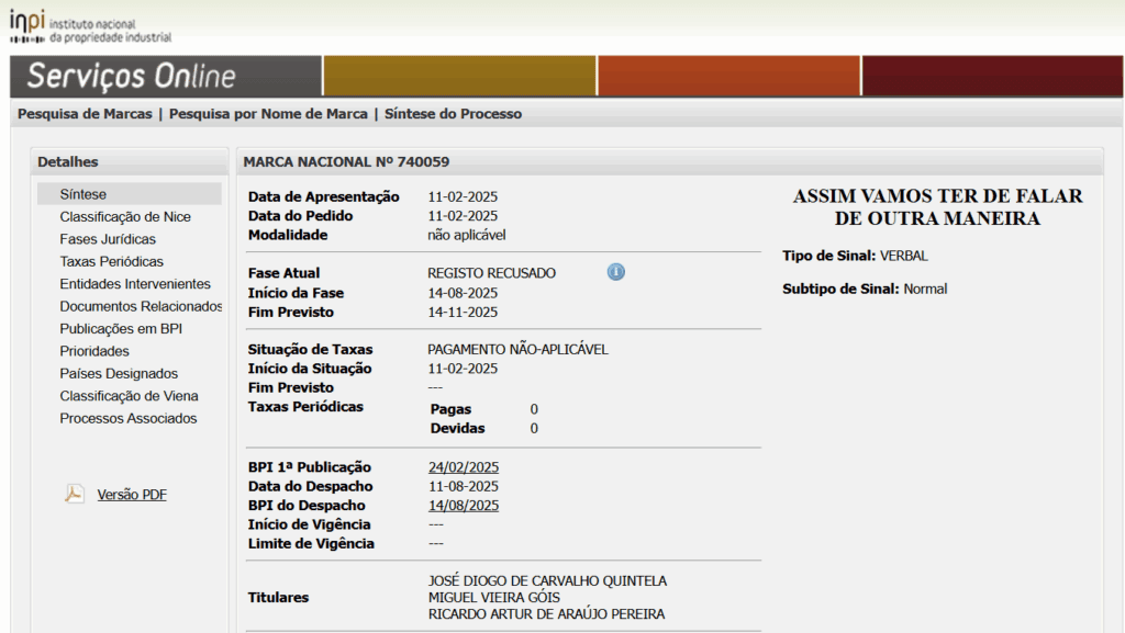 “Na sequência do artigo publicado na edição do jornal digital Página Um de 22 de setembro de 2025, com o título “Assim vão ter de arranjar outro nome: INPI dá nega ao podcast dos Gato Fedorento”, gostaríamos de esclarecer alguns aspetos essenciais, de forma a clarificar o verdadeiro motivo da recusa da marca em questão.