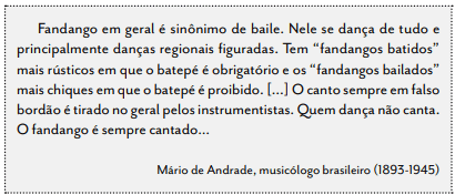 De algumas, conhecemos as características. O fandango, por exemplo, era um tipo de dança popular ibérica marcado por rodopios e saltinhos, acompanhado por guitarra e castanholas.