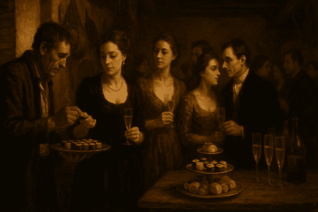 Inocêncio, que nunca vira tanta cerimónia, não conseguia entender. Com peixe fresco em abundância, vinho de qualidade à disposição… e eles ali, entretidos a mordiscar umas coisinhas e a molhar os lábios. Mas lá que tinham um ar distinto, isso tinham. Muito bem vestidos. Chiques, sem dúvida.