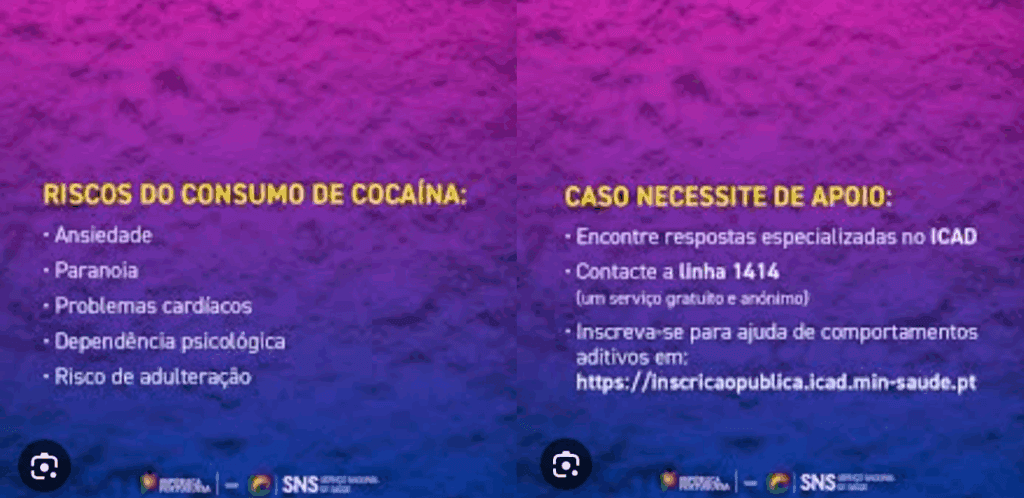 A campanha, apurou o PÁGINA UM, foi elaborada pelo SNS e validada pelo ICAD, em termos científicos, mas não recebeu criticas positivas dos utilizadores das redes sociais que viram nos “slides” polémicos o risco de servirem como incentivo ao consumo daquelas substâncias que causam dependência.