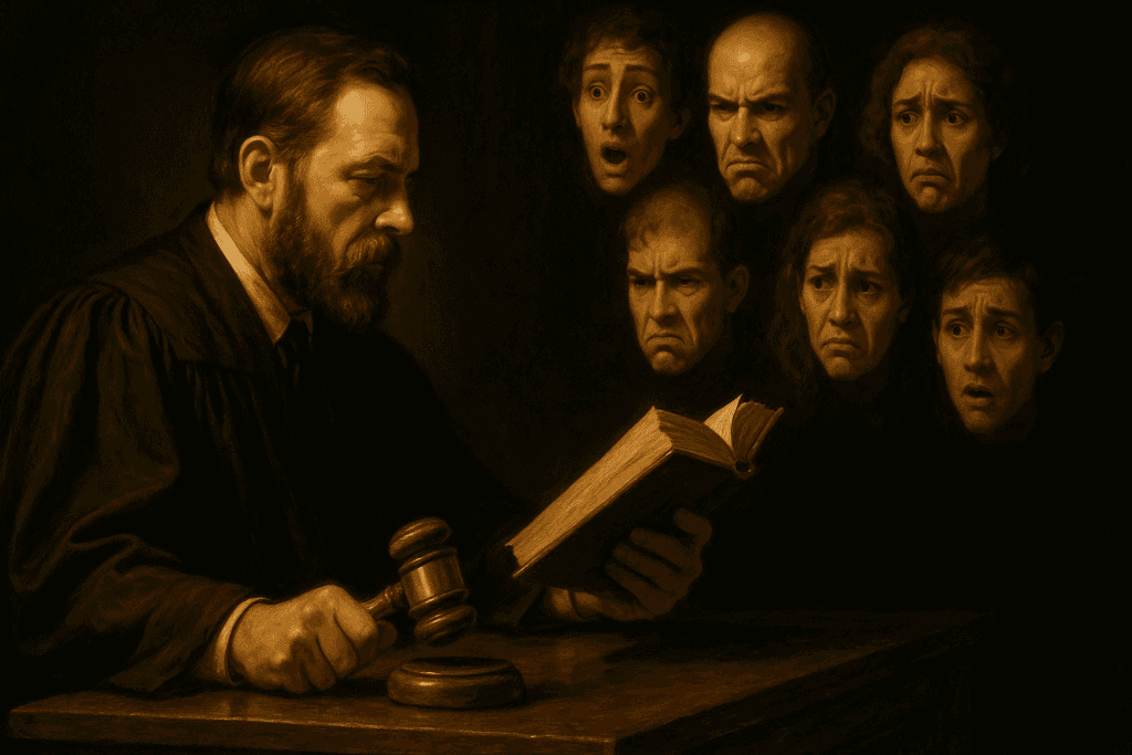 Hoffman faz o paralelismo directo: o juiz e o jurado são herdeiros civilizados do mesmo cérebro tribal que, há milhares de anos, castigava o transgressor à margem da aldeia.