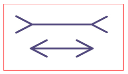 Na ilusão de Müller-Lyer, duas linhas de igual comprimento parecem desiguais porque estão terminadas por setas voltadas para dentro ou para fora. Mesmo sabendo que são idênticas, o cérebro continua a “ver” uma maior que a outra. A geometria é objectiva; a percepção não.