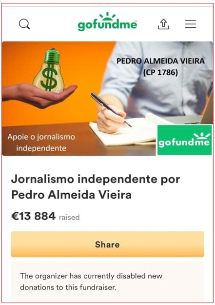 Por esse motivo, pelo comportamento do GoFundMe, o PÁGINA UM não poderia continuar a manter nesta plataforma uma campanha de angariação de fundos.