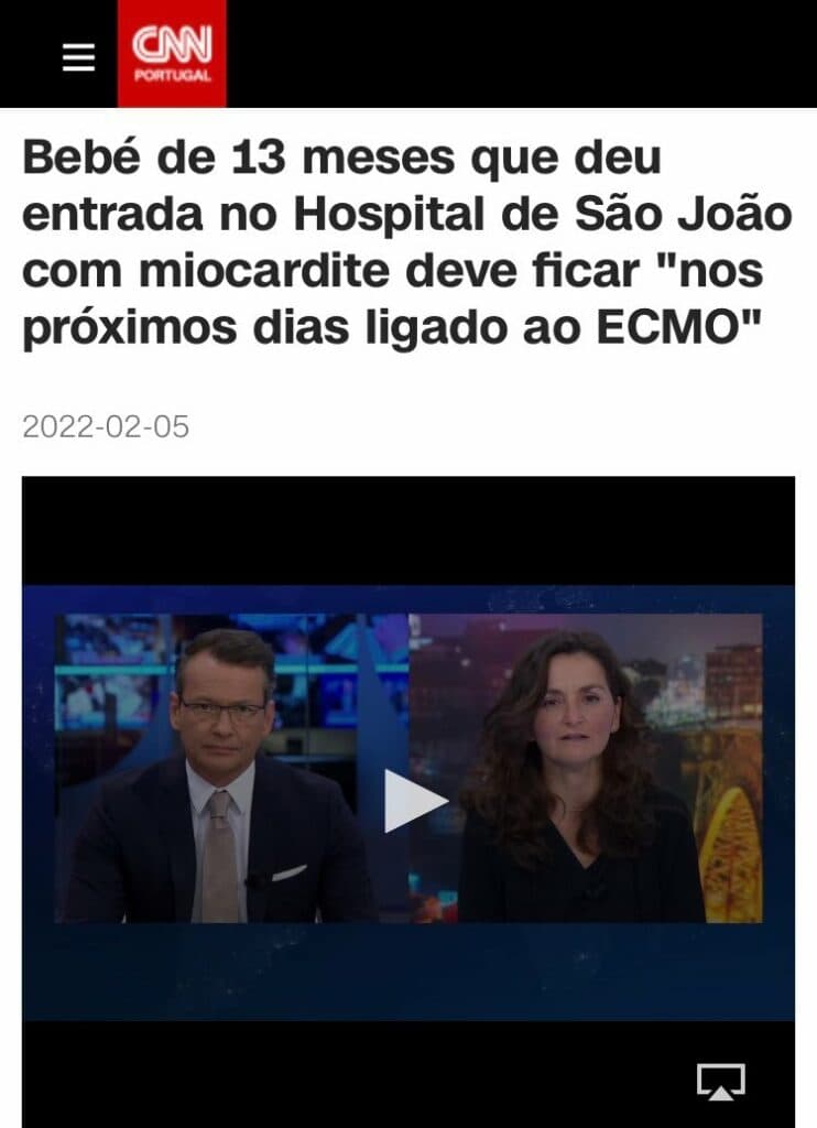 Agora, já não faz mal para a CNN – nem choca o especialista em Urologia Miguel Guimarães, circunstancial presidente de uma associação profissional de direito público conhecida por Ordem dos Médicos – que se divulgue com detalhe, e que haja até uma médica a comentar, o caso do tratamento por ECMO de um bebé de 13 meses com miocardite eventualmente associada à covid-19.
