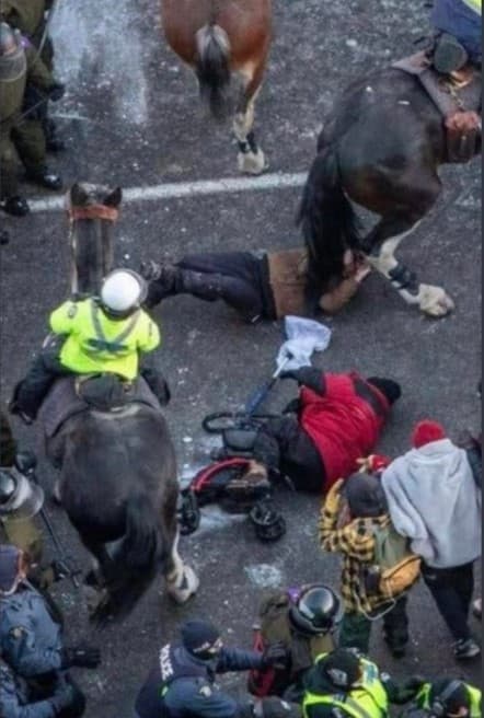 Os protestos, como se sabe, decorreram durante quase 20 dias num confronto sobretudo de palavras. Perante a invasão dos camionistas das ruas de Ottawa, e de outras partes do Canadá, o Governo de Justin Trudeau respondeu sempre com acusações de se estar perante uma minoria extremista e violenta. ↓
