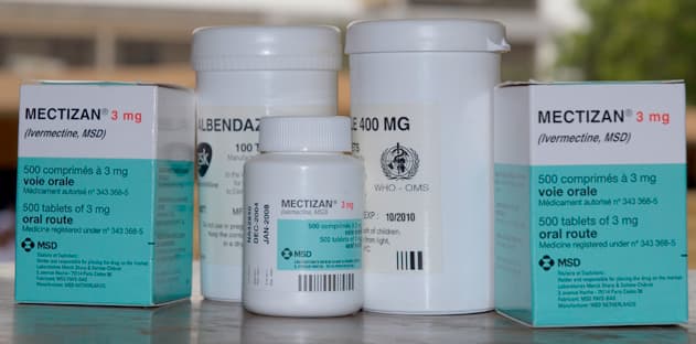 Essas doações encaixam-se no Programa de Doação de Mectizan, nome pelo qual é mais conhecido este fármaco, sendo co-administrado com albendazol, também doado, mas pela GlaxoSmithKline (GSK). Este programa de beneficência é, aliás, a coqueluche (não do sentido de sinónimo de tosse convulsa) da indústria farmacêutica.