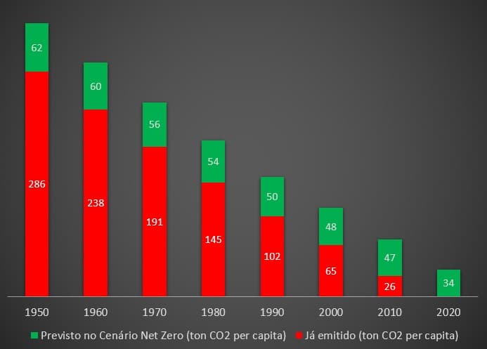 As contas da AIE indicam que enquanto, em média, uma pessoa nascida na década de 1950 emitirá, durante a sua vida, 350 toneladas de CO2, as crianças nascidas na actual década só poderão chegar às 34 toneladas, se se pretender mesmo alcançar a desejada neutralidade carbónica.