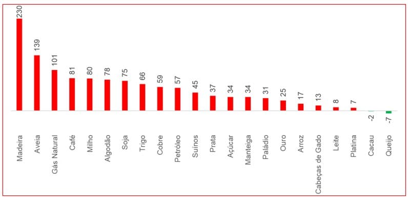 Entre o final de 2019 e o final de Fevereiro de 2022, entre outras, a Madeira subiu 230%, a Aveia 139%, o Gás Natural 101%, o Café 81% e o Milho 80%, apesar da Sra. Lagarde e lacaios dizerem-nos agora que tudo é culpa do Sr. Putin.