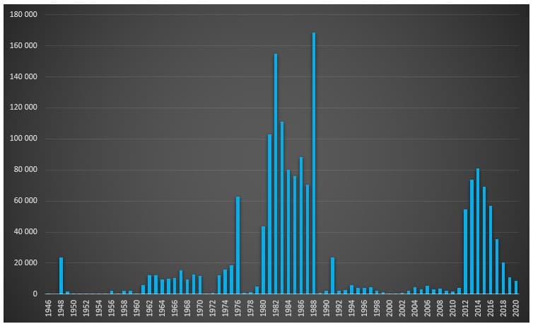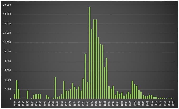A segunda década do presente século foi mais “amena” – se considerarmos o passado –, com valores anuais de vítimas mortais a rondarem as 10 mil.