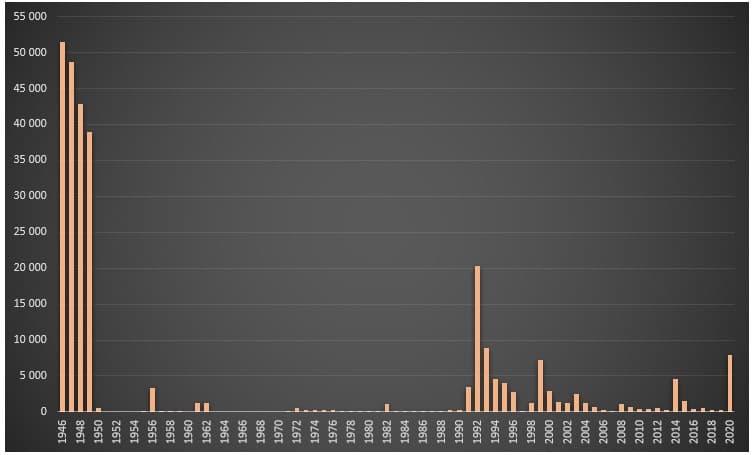 Enfim, certo sim é que, desde 1946 até 2020, segundo dados compilados pelo Our World in Data e validados pelas Nações Unidas, foram mortas 10.477.717 pessoas em conflitos armados, mais do que toda a actual população portuguesa, que contou, nos Censos do ano passado, 10.344.802 vidas.