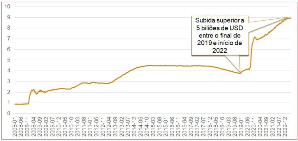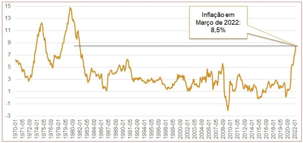 Como chegámos até aqui? Com a impressão de mais 5 biliões de USD (12 zeros) desde o final de Setembro de 2019, em que ocorreu uma crise no mercado interbancário norte-americano, por parte do banco central norte-americano. A crise “pandémica” e agora a “guerra na Ucrânia” são desculpas perfeitas para justificar as consequências desta loucura monetária.