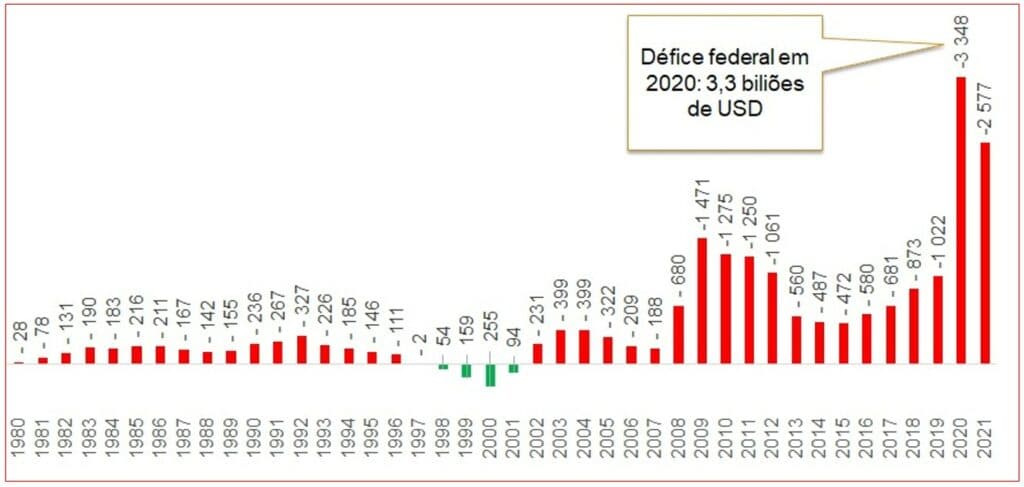 Como o fazem? Geram défices públicos monstruosos – em 2020 foi de 3,3 biliões, um valor superior a 16% do PIB norte-americano – que necessitam de ser financiados por novas emissões de dívida pública.