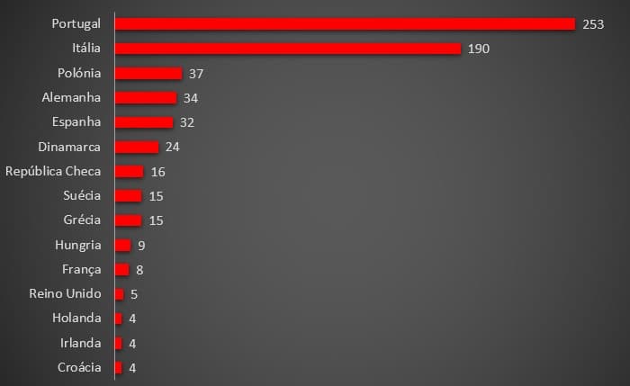 O segundo país com mais casos é a Itália, com 190, mas com uma população seis vezes superior a Portugal. Casos adversos relacionados com o polémico fármaco da Gilead são relativamente escassos nos outros países da União Europeia.