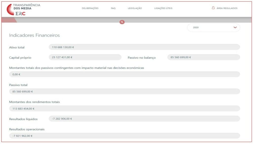 De acordo com um diploma legal de Abril de 2016, as entidades que, sob forma societária, prossigam atividades de comunicação social devem enviar anualmente à ERC um relatório de governo societário, incluindo dados sobre o capital próprio, activo total, passivo total, resultados operacionais, resultados líquidos (lucro), rendimentos totais e passivos (totais e contingentes).