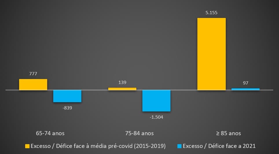 Este grupo etário esteve em contínuo crescimento nas últimas décadas, fruto das melhorias nos cuidados médicos, tendo duplicado mesmo o seu número entre 2004 (quando então viviam apenas cerca de 16 mil pessoas com mais de 85 anos) e 2020. Esse crescimento será quebrado, certamente agora, com o excesso de óbitos em 2021 e 2022.