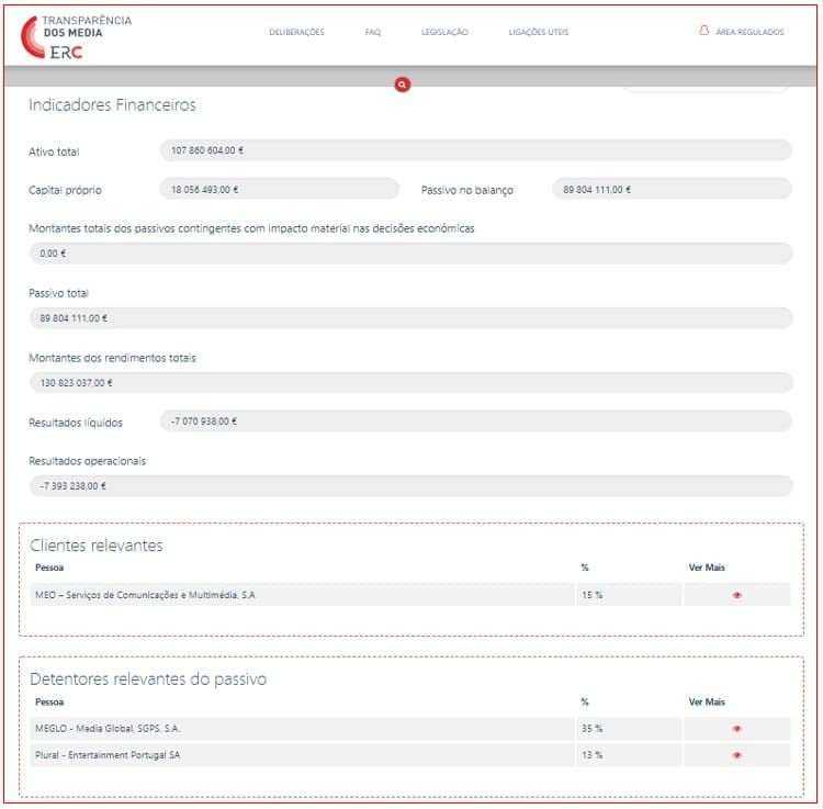 De acordo com um diploma legal de Abril de 2016, as entidades que, sob forma societária, prossigam atividades de comunicação social devem enviar anualmente à ERC um relatório de governo societário, incluindo dados sobre o capital próprio, activo total, passivo total, resultados operacionais, resultados líquidos (lucro), rendimentos totais e passivos (totais e contingentes).