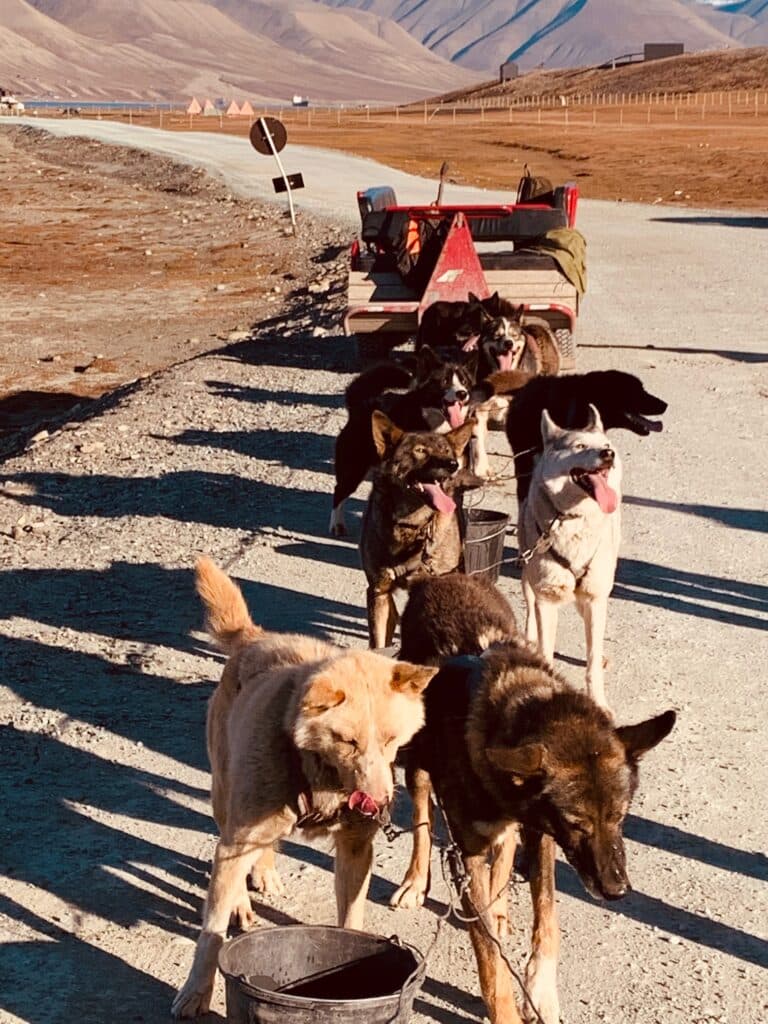 A conversa debruçou-se sobre a vida em Svalbard, sobretudo no Inverno, a altura mais difícil, pois é noite 24 horas por dia, durante seis meses. Os guias dormem metade do tempo na cidade, metade no complexo dos cães. Há também duas famílias com crianças e o complexo tem um parque infantil. Mas não têm água para banhos. Têm uma parceria com um ginásio onde tomam banho. (Imagino os Invernos e a preguiça de saírem de casa para ir tomar banho).