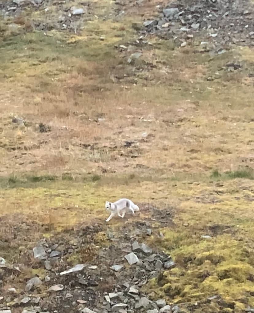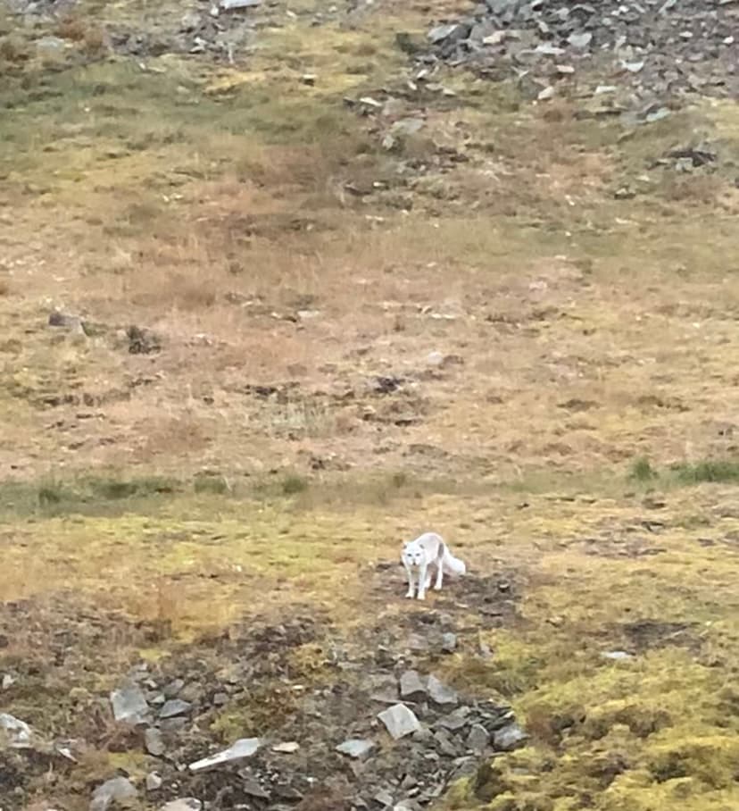 Um hóspede correu até à sala e perguntou: “queres ver uma raposa do Árctico?”. Da janela do seu quarto avistava-se o animal, que já tinha mudado o pelo para o Inverno. Descia a montanha curioso.