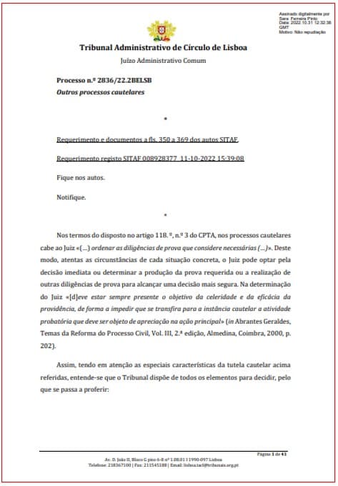 Apesar de o PÁGINA UM e o seu director nunca terem sido citados nas notícias – de forma propositada, numa tentativa de condicionar eventuais consequências legais, e para não se expor que se tratava meramente de um “ataque” a um órgão de comunicação social que tinha acabado de nascer –, o Tribunal Administrativo de Lisboa não teve dúvidas sobre a quem o artigo do Público se estava a referir.