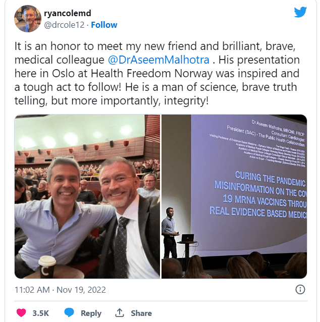 Ainda esta semana, Aseem Malhotra, um especialista em cardiologia britânico que tem feito uma campanha para suspensão da administração de vacinas mRNA contra a covid-19, partilhou a sua alegria no Twitter, após ter finalmente conhecido, em carne e osso, Ryan Cole, um reputado patologista que tem educado sobre o que as vacinas causam no corpo humano. Ambos têm sido alvo de censura e perseguição, numa altura em que o dinheiro da indústria farmacêutica e dos seus associados – incluindo políticos, grupos de media e tecnológicas – ainda tem algum poder.