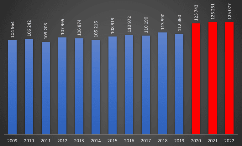 De acordo com estimativas do PÁGINA UM, se até ao final de Dezembro se observar um nível de mortalidade similar ao dos primeiros 12 dias do mês, o ano de 2022 terminará ligeiramente acima dos 125 mil óbitos. Esse número (125.077) será ligeiramente inferior ao de 2021 (125.231). No entanto, se houver um agravamento, 2022 pode mesmo suplantar 2021, “bastando” que entre hoje e o dia 31 de Dezembro a mortalidade média diária suba para os 412 óbitos, o que não se afigura impossível. Por exemplo, nesse período, em 2020 atingiu-se os 418 óbitos de média diária, e em 2016 – portanto, muito antes da covid-19 – o número esteve próximo (409).