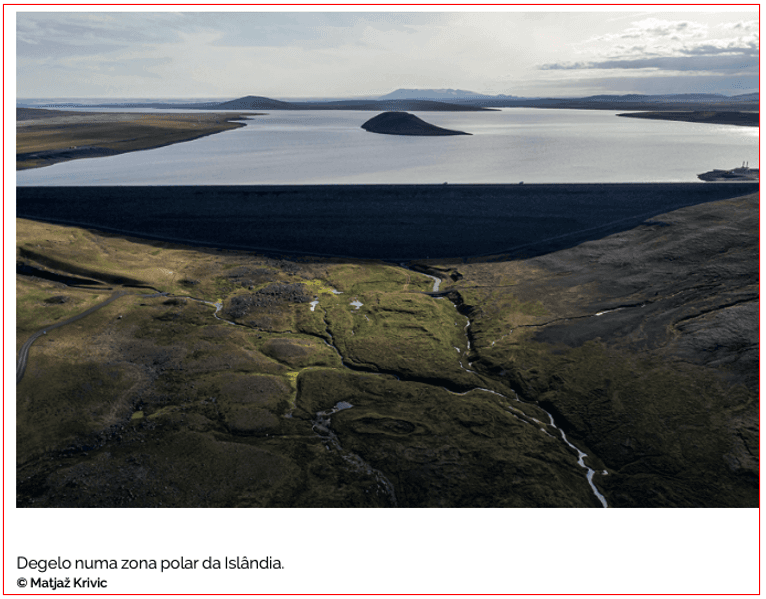 A meta estabelecida na Cimeira Climática de Paris em 2015 – limitar o aumento da temperatura a 1,5 graus Celsius até 2100 – já perdeu a validade. O verão de 2021 registou dois dos meses mais quentes na história da medição de temperaturas. Em Verkhoyansk, oficialmente a cidade mais fria da Sibéria, o termómetro fixou um recorde de 37,8 graus Celsius no final de junho de 2020. Não era de admirar, por isso, que Matjaž e eu pudéssemos observar glaciares a derreter na Islândia, quando aquele país insular foi surpreendido por um verão com temperaturas noturnas que facilmente chegavam aos 25 graus Celsius. Aquela era uma nova Islândia, cada vez mais sem gelo, onde os agricultores tiveram que passar a trabalhar à noite, quando o calor permitia recuperar o fôlego – tudo isto nas imediações do Círculo Polar Ártico.