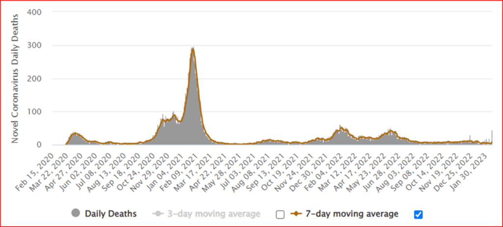 Eis uma perfeita, conclusiva e comprometedora declaração de fé. A realidade tem estado a desmentir este alarmismo. Em Setembro e Outubro de 2022 houve pouco mais de 10 mil casos positivos – também por se ter desistido de testar de forma massiva – e um registo de 400 óbitos, que representa uma média diária de menos de sete óbitos por dia. Desde Agosto de 2022 até à data – ou seja, quase sete meses – a mortalidade diária atribuída à covid-19 nunca ultrapassou os 12 óbitos, mesmo durante o Inverno deste ano, mostrando assim fortes sinais de estarmos numa fase endémica. A ideia de que a “única forma de quebrar estes [supostos] ciclos será com vacinas de nova geração” não tem suporte científico e soa a completa propaganda.
