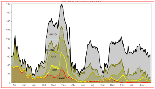 Passando, por agora, sobre o indicador da pandemia propriamente dito, referido no sumário, foquemo-nos na seguinte frase deste Relatório Rápido nº 52: