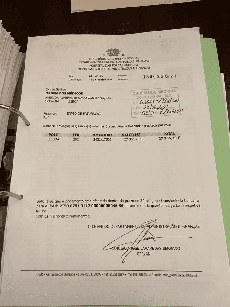 - Em alternativa à legalidade, o Hospital das Forças Armadas teve sim indicações para emitir a factura em nome de uma entidade que, efectivamente, não lhe tinha pagado nada: a Ordem dos Médicos.
