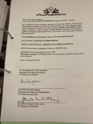- A campanha Todos por Quem Cuida pagou a vacinação dos médicos não-prioritários ao Hospital das Forças Armadas (não sendo este pagamento do conhecimento público antes da notícia do PÁGINA UM), mas este fluxo financeiro não teve a correspondente emissão de factura em nome dos gestores da dita campanha.