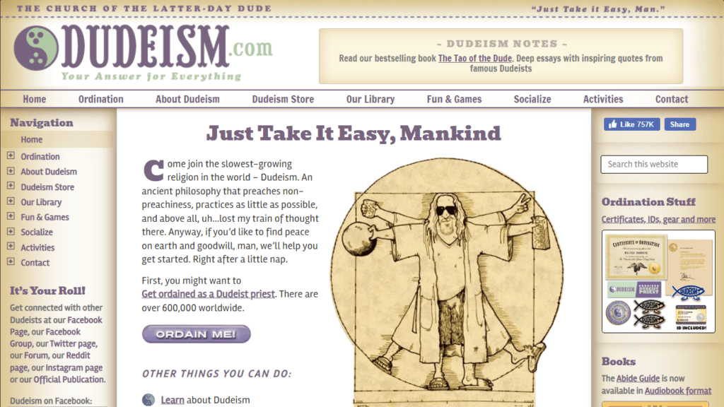 Mas as particularidades não se ficam por aqui. The Big Lebowski conseguiu a proeza de servir de inspiração para a “criação” de uma religião e filosofia de vida, que dá pelo nome de Dudeism – reconhecida pelo Governo norte-americano e conta com mais de 600 mil padres ordenados.