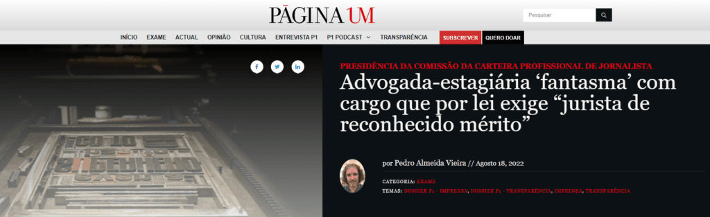 Saliente-se que, apesar de o director do PÁGINA UM ter abordado por mais de uma dezena de vezes casos de promiscuidade na imprensa mainstream e questionado em artigos jornalísticos e de opinião as qualificações da presidente da CCPJ – as causas para que esta entidade considerasse que os pedidos deveriam ser vistos como “manifestamente abusivos” –, não existe em curso qualquer processo disciplinar contra si.