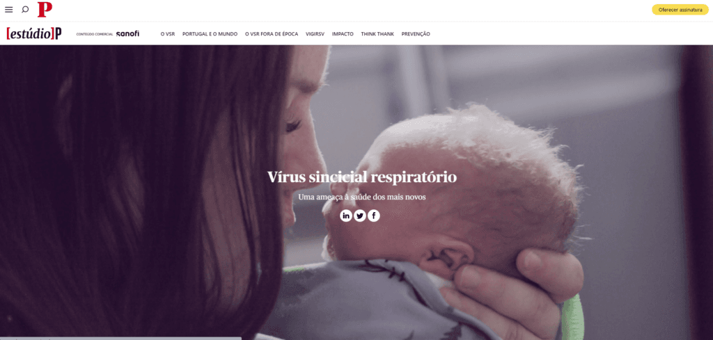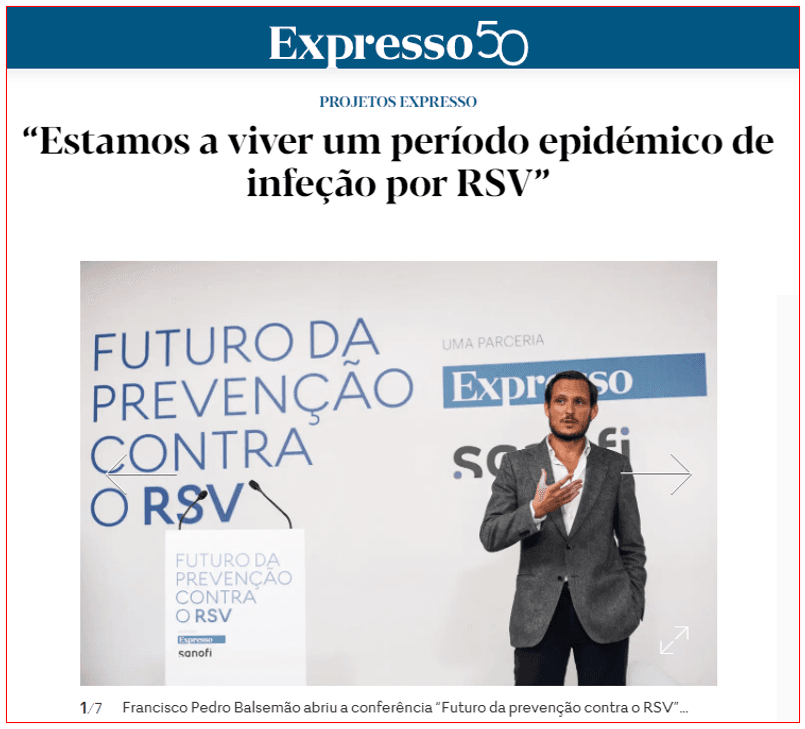 Numa dessas conferências sobre RSV feitas pelo Expresso, em Novembro do ano passado, coberto para a edição semanal em papel do jornal, diz-se que “o Expresso associou-se à Sanofi para promover um debate sobre os principais vírus respiratórios que afetam as crianças, nomeadamente o vírus sincicial respiratório (RSV), que é responsável por 285 internamentos – desde outubro do ano passado até agora – e que pode causar doença respiratória grave nas crianças”.